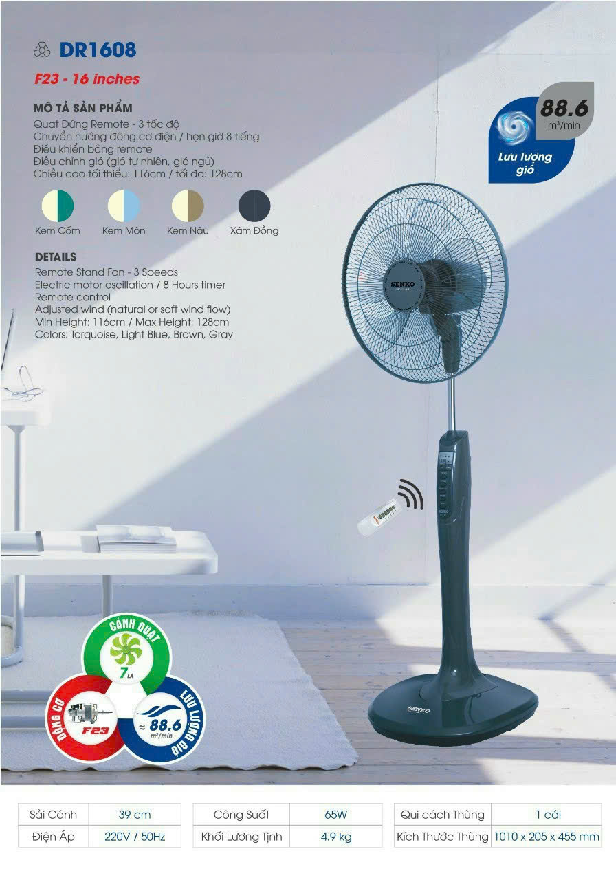/ Quạt Đứng Remote Senko DR1608 – F23